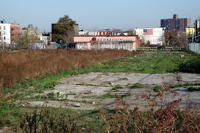 -a view towards Surf Ave, and Nathans, most areas are empty lots, Trump Village in distance... view towards Nathans