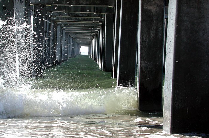 -a large picture of the water splashing under the pier...